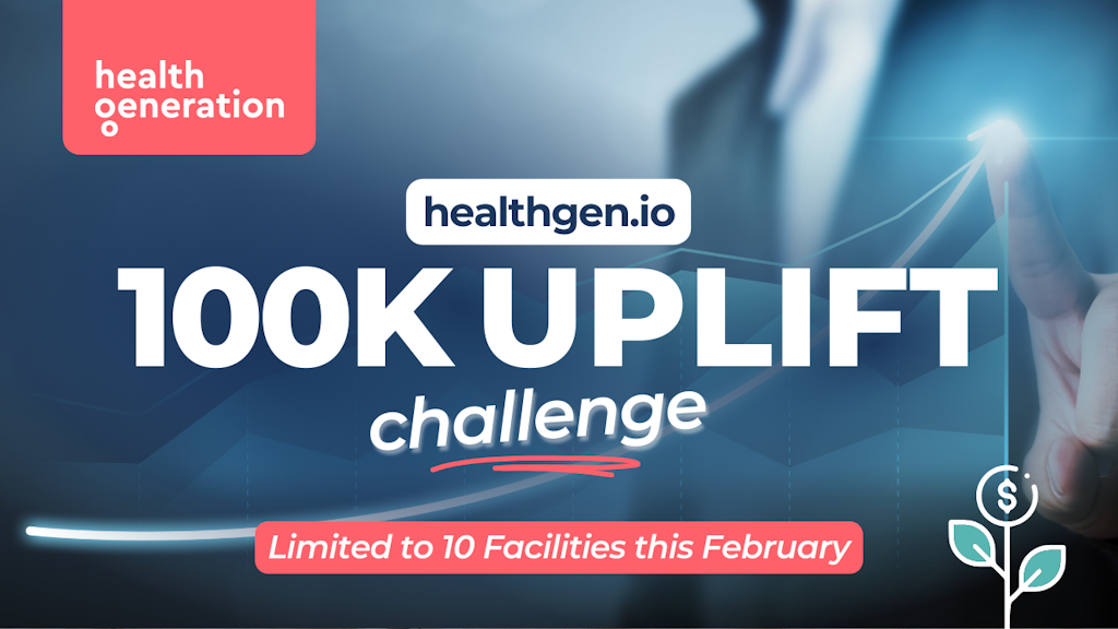 This February, we invite you to join our HealthGen.io $100,000 Uplift Challenge, exclusively for 10 facilities. If we don’t achieve a $100,000 uplift for your facility, we’ll contribute $10,000, showing our commitment to your success.