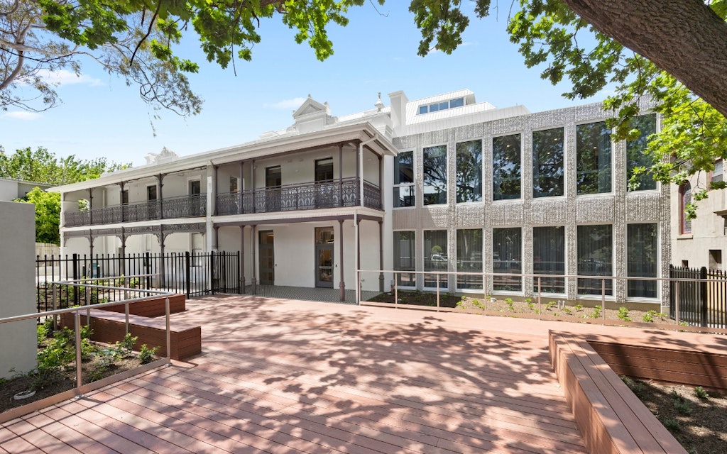 The facility is named in honour of long-serving board member John Hood, who joined the organisation in 1999 and served for 22 years, including 11 as Chair. The former Richmond Hill Hotel has been redeveloped to retain its historic exterior while incorporating modern design and comfort. The site now includes 77 aged care suites across five levels, with upper floors offering views across the Melbourne skyline.