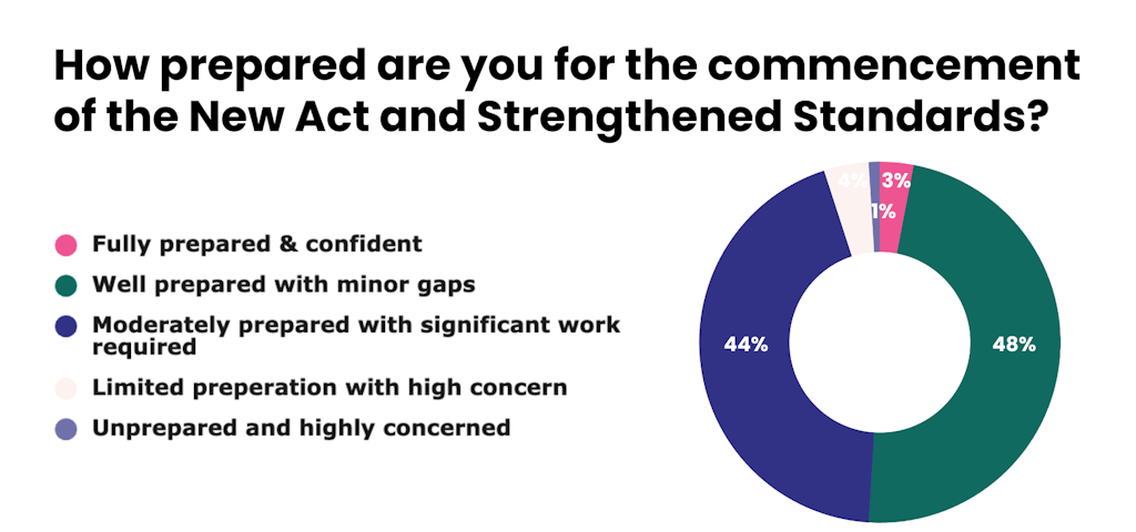A new national poll of 230 organisations has found that only 3% of providers feel fully prepared for the 1 November reforms. Almost half (48%) said they were mostly ready but still had “minor gaps,” while a similar proportion (44%) said they had “significant work required.”