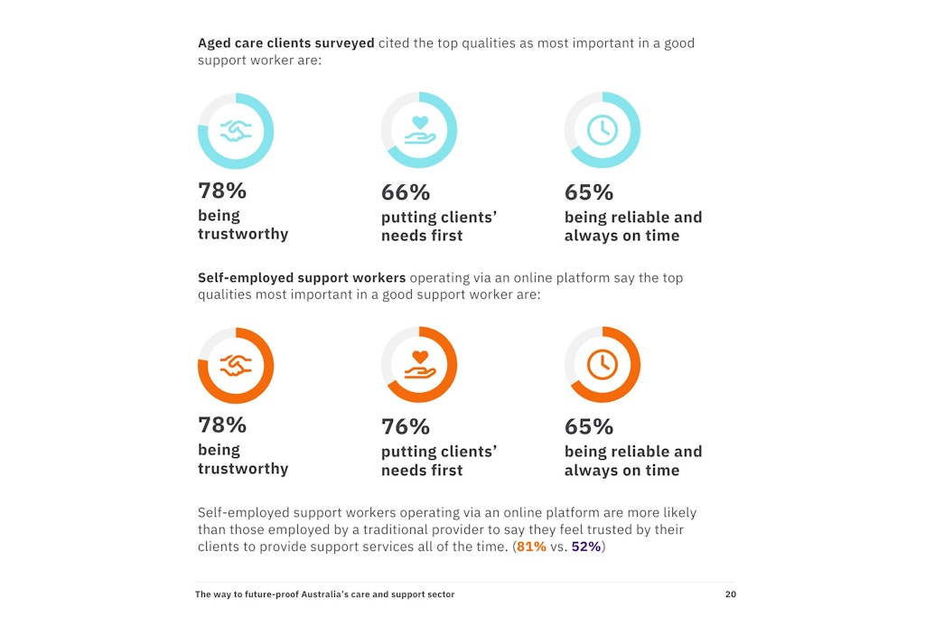 Cost is also important as 71% of aged clients said they get more value and hours of support if they book support workers through an online platform. Interestingly, that figure was only 46% for NDIS participants.