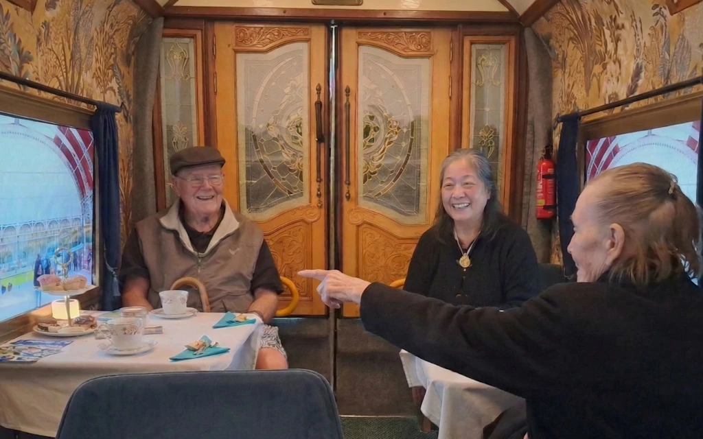 The concept is deceptively simple. A purpose-built room, wheelchair and daybed accessible, seats up to eight residents for a 30 to 45 minute immersive session. Virtual windows sweep them through their chosen destination while morning or high tea is served. It’s not virtual reality. It’s something more considered: a carefully designed sensory environment built around how older people actually experience the world.