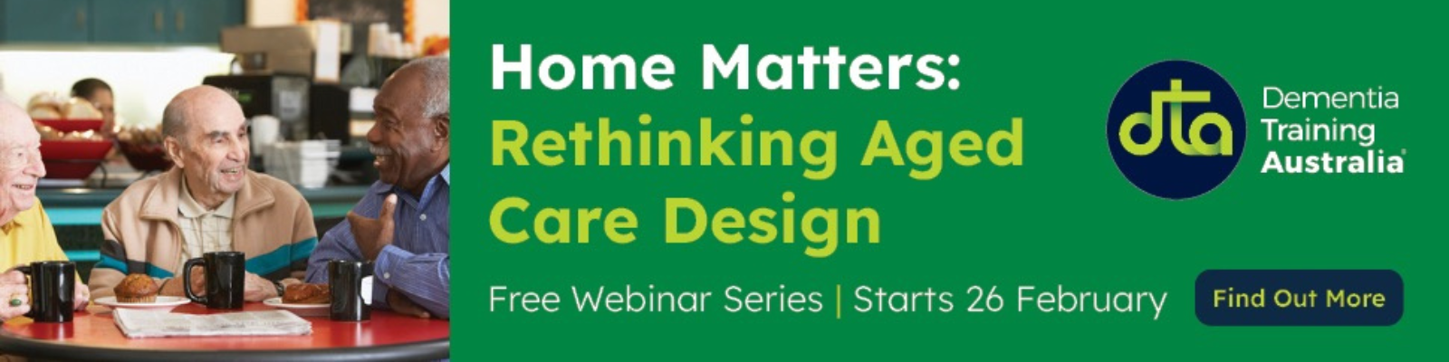 Dementia Training Australia, in collaboration with the Department of Health, Disability and Ageing, presents Home Matters: Rethinking Aged Care Design, an eight-part webinar series exploring how thoughtfully designed environments can significantly enhance quality of life for older people while supporting safe, effective and sustainable workplaces in aged care.
